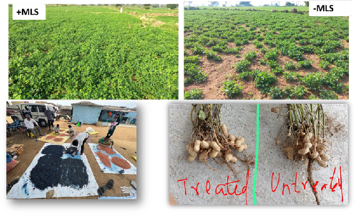 Farmers participating in the demonstrations reported positive experiences with the technology, highlighting better crop growth, improved yields, and enhanced profitability. The success of the demonstrations generated considerable interest among farmers in Vikarabad district, many of whom expressed willingness to adopt the technology in future seasons. The successful implementation at Rampur Thanda clearly demonstrates the potential of biopolymer-enabled multilayer seed coating technology to improve groundnut productivity, enhance farm income, and promote efficient resource use. The consistent performance across seasons confirms its robustness under diverse field conditions. Given its farmer-friendly, environmentally safe, and economically viable nature, the technology holds strong potential for large-scale adoption in groundnut-ba